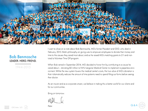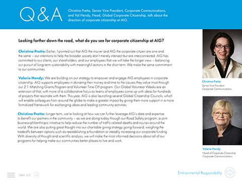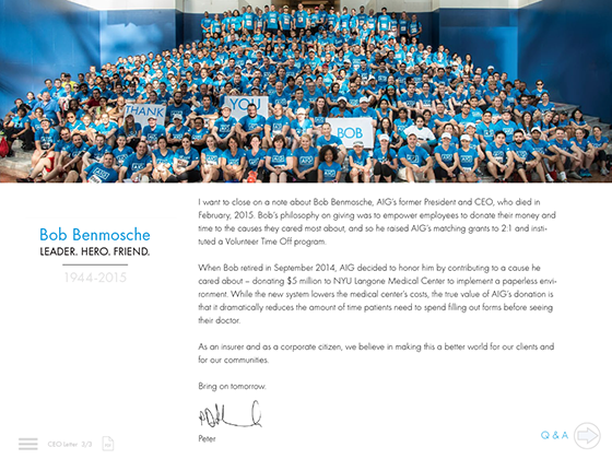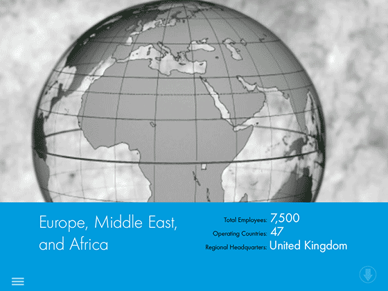 The report app is separated in eight sections plus the Letter from the CEO, a Q&A, and world region yearly report from the Americas, Asia Pacific, and Europe, Middle East, and Africa.