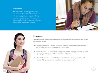 Emerging from the government bailout and paying back the taxpayers in full plus a $20 billion profit, AIG is renewed in their mission to provide their customers the best service possible. Leveraging their advantages, AIG distinquishes itself from the competition with it's global reach.