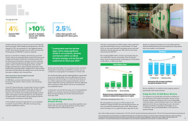 In this year's report H&R Block CEO Jeff Jones speaks to the various slight headwinds they experienced while still achieving overall 9% growth. The Shareholders letter lays out H&R Block's strategic imperatives focusing on small business and DIY products that are increasing market share.