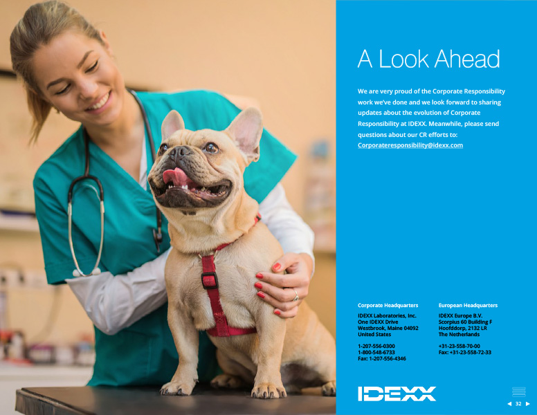 The work IDEXX does makes a positive impact in the world in part by supporting the human-animal bond through advances in pet health care. Pets can’t tell you how they feel, so bloodwork results help give pets a voice in their healthcare. IDEXX's innovations in pet care diagnostics expand their vocabulary.